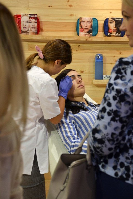 Jak zawsze targi kosmetyczne są dla nas okazją by krok po kroku zaprezentować zabiegi RefectoCil. Także tym razem pokazaliśmy koloryzację brwi i rzęs, przy użyciu tradycyjnej henny RefectoCil oraz żelowej RefectoCil Sensitive. Ta druga jest przeznaczona dla alergików i dla osób o wrażliwej skórze, ale także dla tych, którzy cenią sobie naturalność kosmetyków. Bowiem RefectoCil Sensitive posiada formułę opartą na naturalnych składnikach roślinnych, zaś substancję aktywną stanowi azotan srebra. Na naszej scenie odbywały się również pokazy trwałego podkręcania rzęs Eyelash Curl oraz Lifting rzęs.