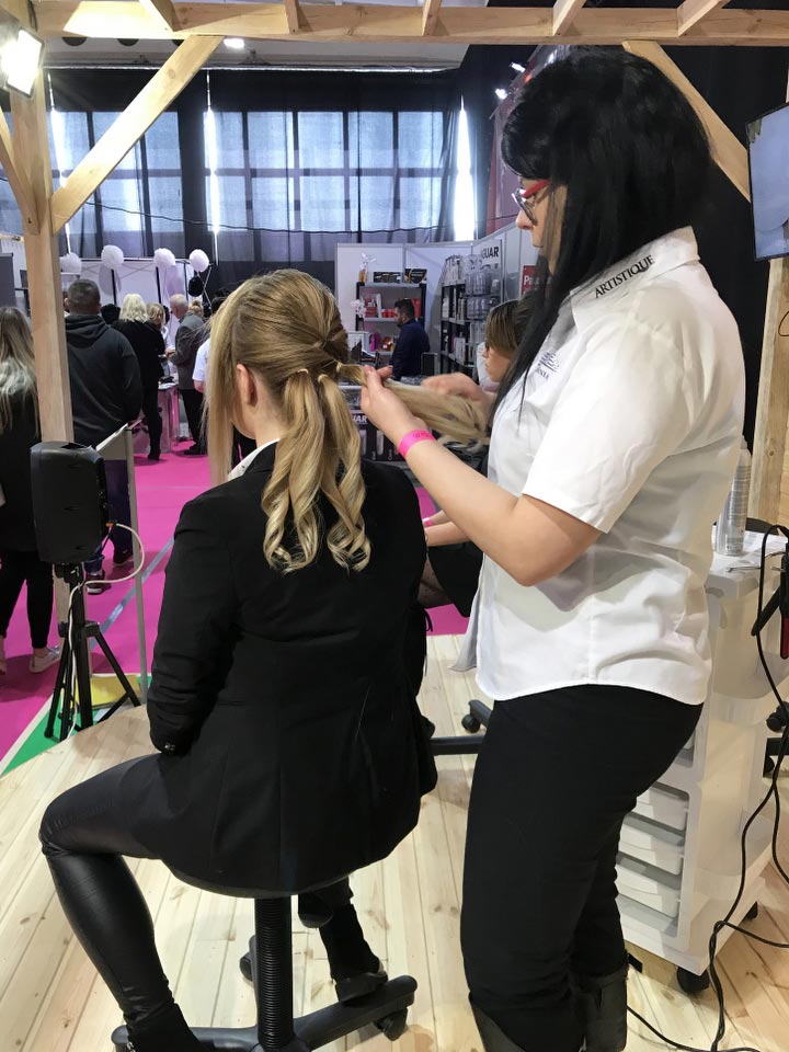 Na naszej scenie pojawiła się znakomita stylistka fryzur – Dominika Albrecht z Studia fryzjerskiego Artistique w Koninie. Na wstępie zademonstrowała szereg upięć okolicznościowych, a także oryginalnych koloryzacji. Jedne z nich były stonowane i oparte na tradycyjnych technikach, przeznaczone dla osób o bardziej zachowawczym stylu. Inne z kolei, wykonane farbami do bezpośredniej koloryzacji z serii Freak od Artistique zaskakiwały odwagą i wibracją kolorów np. w odcieniach płomiennej pomarańczy.